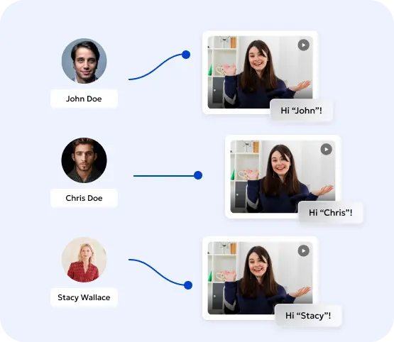 One master video. Connect your data. Saynize automatically inserts the right name, product, city, or plan into every single version.
